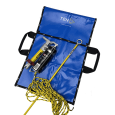 Bag, rope ins & spray can holder, blue PVC, 90 x 42cm, 2 pock, carry handles, TEN