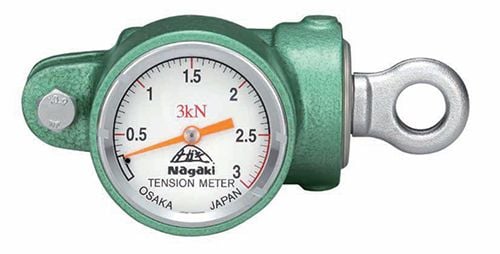 Used to measure tension in wires, belts and cables, the NGK tension meter features two pulling eyes, connected to an analog indicator. This allows the user to accurately monitor tension and adjust equipment and loads accordingly.