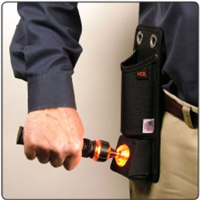 The HDE LV-5-K01 is supplied with a belt clip holster, allowing the user to carry the LV-5 in the holster on their belt. The holster also includes an integrated tester that supplies a low voltage AC signal for testing the LV-5 before and after use. Two optional accessories are available for the LV-5. The Extension Handle extends to the reach of the LV-5, allowing the Tester to test equipment in hard to reach locations. The Earth Shield is used in areas where high voltage lines or other energised conductors are present.
