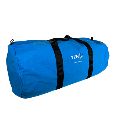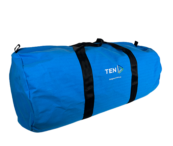 Bag, equipment, blue canvas, 80x38Dcm, barrel, PPE, ID poc, slide lock zip, handles, TEN